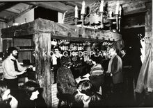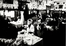 Formaat : 9 x 12,5 cm. - We herkennen de barman Freddy en links de kelner Paul Devriese.