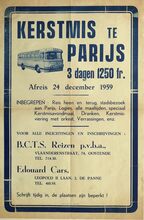 Formaat : 55 x 37 cm. Inbregrepen : Reis heen en terug, stadsbezoek aan parijs, Logies, alle maatlijden, speciaal kerstmisavondmaal, Dranken, kerstmisviering met orkest, verassingen, enz. BCTS Reizen pvba. Vlaanderenstraat 74, Oostende. Edouard Cars. Leopold II Laan 2, De Panne