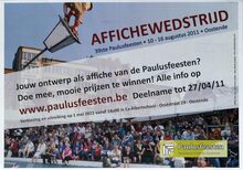 Formaat : 30 x 42 cm. Jouw ontwerp als affiche van de paulusfeesten? Doe mee, mooie prijzen te winnen! Alle info op www.paulusfeesten.be Deelname tot 27/04/2011. Verkiezing en uitreiking op 1 mei 2011 vanaf 14u00 in Ex-Albertschool - Ooststraat 29 - Oostende.