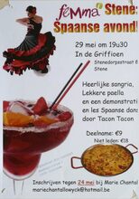 Formaat : 30 x 21 cm. In de Griffioen, Stenedorpstraat 87, Stene. Heerlijke sangria, lekkere paella, demonstratie en les spaanse dans door Tacon Tacon.