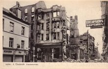 Postkaart Foto Antony, nr. 100831-6. - Oostende - Vlaanderenstraat. - Op de hoek met de Langestraat, de patisserie-tearoom-ijssalon O. AckeΒ (nr.Β 50), wat verder het "Hotel LΓ©opold II" (nr. 42)