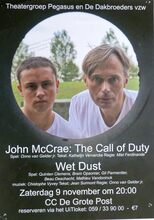 Formaat : 42 x 30 cm. The Call of Duty : Spel: Onno van Gelder jr. Tekst: Kathelijn Vervarcke, regie: Miel Ferdinande. Wet Dust: Spel : Quinten Clemens, Bram Opsomer, Gil Parmentier, Beau Deschacht, Mathieu Vandoninck. Muziek: Christophe Vyvey. Tekst: Jean Sumont. Regie: Onno van Gelder jr.