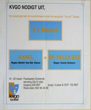 Formaat : 48 x 40 cm. KVGO nodigt uit, De vereenigde taal- en kunstminnaers onder de kernspreuk "Vooruit" Deinze. Regie : Dimitri Van Der Vieren. Regie : Veerle Schoors.
