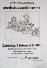 Formaat : 42 x 30 cm. tot 15/01: Thematentoonstelling: "De Bevrijding van Oostende." door Ferdinant Gevaert. 3/01: Scrabble. 13/01: Dialoogavond: "Kennis maken met Polen vandaag" door Yvan Grasjean. 14/01: Davidsfonds-triviant - quiz. 15/01: Strandwandeling. 16/01: Demonstratie: "Kaas uit BelgiΓ«". Voordracht: "Voor God en Vaderland" door prof. dr. R. Pinxten. 18/01: Voordracht: "De Baptisten" door J. Verhaeghe. 22/01: Wandeling. 23/01: Voordracht: "Griekenland en Kreta" door Staf De Leger. 26/01: Theater: "De moord op Albert I" door Luc Schoonjans. 26/01-28/01: Toneel: "Oidipoes in Kolonos" van Hugo Claus. 28/01-29/01: Tentoonstelling Zandvoordse kunstenaars.