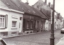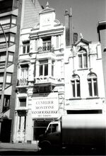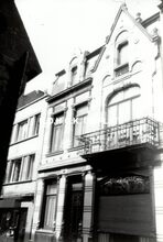 Foto : 15 x 10 cm. - Dubbelhuis in art-nouveaustijl naar ontwerp van architect Charles Pil uit Oostende. TegeltableausΒ met floraleΒ motieven en opschriften "'TΒ Brouwershuis", "Brouwerij" en "Het Kruis", afkomstig van de Hasseltse "Manufacture de CΓ©ramique DΓ©coratives". Beschermd als monument bij MB van 05/03/2001.