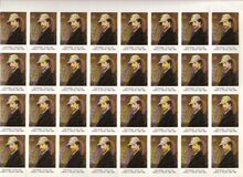 Blad sluitzegels "Zelfportret metΒ bloemenhoed" van James Ensor.