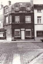 Afdruk van postkaart. - Formaat : 11,5 x 17 cm. Op de hoek van het Sint- Catharinaplein met de Nijverheidsstraat zien we kruidenierswinkel Vercruysse