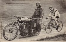 Neurdein/ND Phot..167. - Les Sports - Nos stayers et leurs entraineurs. Simar entrainé par Bertin. - Frans baanwielrenner van 1900 tot 1913. Zijn grootste succes was vice-wereldkampioen te Londen in 1904. Zijn broer Jean woonde te Oostende