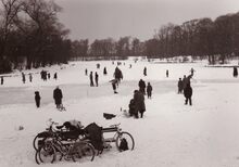 Maria-Hendrikapark,schaatsers op het bevroren spiegelmeer.