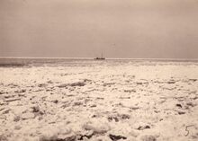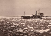 De O. 225 "Guido Gezelle" in het ijs in het Montgomerydok.