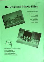 Formaat: 42 x 30 cm. Leiding: Marita Engels. Docenten: Marita Engels, Birthe Claeys, Davina Demelenne. Kleuterdans vanaf 4 jaar. Klassiek ballet vanaf 6 jaar. Jazz en modern naast klassiek vanaf 12 jaar. Jazz-demodans voor kids en jeugd.