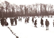 Het Maria-Hendrikapak,winterpret op het bevroren spiegelmeer.Op de achtergrond tussen de bomen een glimp van de "Armenonville" het lokaal van de Sint Jorisgiilde.