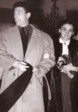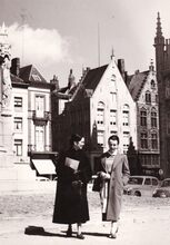 De accordeonvirtuose Astrid DE LAENDER,° Oostende 03-08-1938, met haar lereaar (of vader ?).