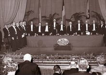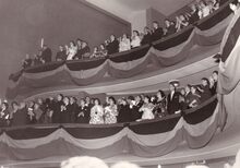 Formaat : 13 x 18 cm. - De Koninklijke Schouwburg (Van Iseghemlaan) tijdens de slotopvoering opvoering voor het Koninklijk Landjuweel in aanwezigheid van Koning Boudewijn. Het 26ste tornooi 1959-1960 werd gewonnen door de Sint-Augustinuskring uit Antwerpen met "Onder Hoge Bescherming" van Efraïm Kishon, een satirische comedie in 3 bedrijven en werd opgevoerd op 26/12/1959. De voorstellingen voor Het Koninklijk Landjuweel gingen door in december 1959 en januari 1960.