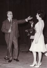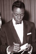 Nat King COLE of Nathaniel Adam COLES ° Montgomery (U.S.) 17-03-1916 + Santa Monica (U.S.) 15-02-1985, geef een handtekening weg bij zijn optreden in het kursaal.