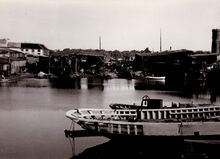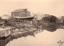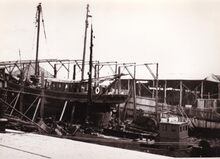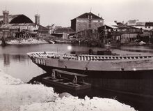 Scheepswerven aan het derde handelsdok (nu verdwenen). Links werf LOY, rechts werf HILLEBRANDT.
