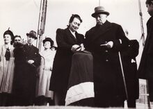 Scheepswerf Beliard-Crighton & CΒ°, de heer en mevrouw BELIARD bij de doop van een te water te laten boot.