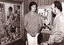 Centraal staat kunstschilder Joris HOUWEN op de opening van een tentoonstelling van zijn werken.