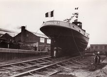 De MarseillaisΒ 3 gebouwd voor rekening van de rederij Chambon op de helling van de scheepswerf Beliard-Crighton & CΒ°, klaar voor de stapelloop.