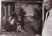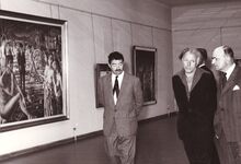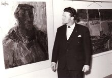 Kunstschilder Anton DIEZ op een tentoonstelling voor een van zijn werken.