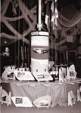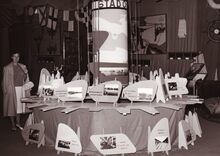 Toeristische tentoonstelling in het oud station (Albert Hall) op het ernest Feysplein.Stand van stad Oostende.
