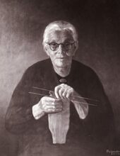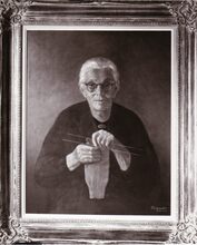 Een kleurfoto van een portret door kunstschilder Frans REGOUDT (zijn moeder ?).