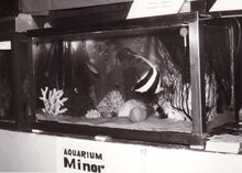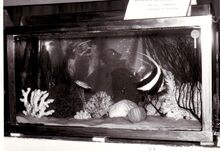Een aquarium met tropische vissen op een tentoonstellingΒ van Oostende Platy.
