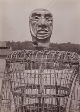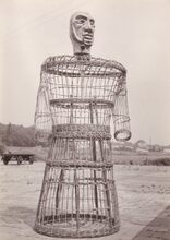 Waarschijnlijk het geraamte in riet van de derde generatie Oostendse reuzen, in 1947. Hier Tone III