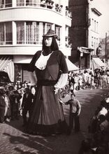 De reuzin "Grietje" uit NieuwpoortΒ in de Kapellestraat, aan de hoek met de Ooststraat.