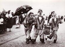 Het Oostends koor "Het Loze Vissertje" in een stoet op de Torhoutse steenweg (?).