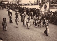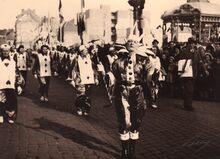 Formaat : 13 x 18 cm. - Leden van de Sint-Sebastiaansgilde doen mee aan het carnaval.