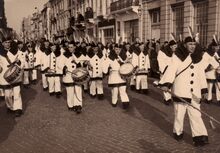 "Les Gilles du Pays Noir" uit Charleroi, in deΒ stoet in de Kapellestraat.