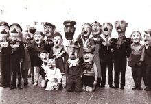 Formaat : 13 x 18 cm. - De carnavalisten van café "Opex" op een voetbalterrein op de Vuurtorenwijk.