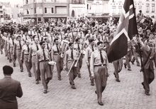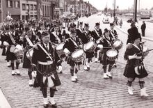 De rerum novarumstoet,voorafgegaan door een katholieke (uiteraard) muziekvereniging op de Alfons Pieterslaan aan de rijkswachtkazerne.