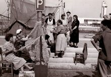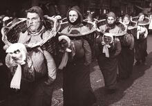 De folkloristische vereniging "De Gilissen der Zee" in een stoet op de Visserskaai.