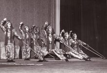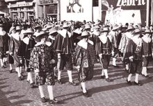 Een folkloregroep in de carnavalstoet op het Wapenplein. Achteraan de Brabantstraat.
