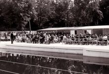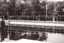 Inhuldiging van het zwembad "Maurice REYNAERT" van de Vrije Zwemmers in het Maria-Hendrikapark.