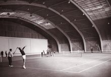 Tennissers in het sportcentrum aan de Koninginnelaan,kort na de inhuldiging ervan.