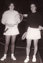 Twee tennisters in het sportcentrum aan de Koninginnelaan.
