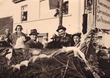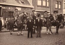 Doortocht van de inhuldigingsstoet komt voorbij de nieuwe pastoor van Stene aan de Steense Dijk.