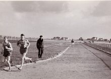 Stratenloop in de Prins Albertlaan (Bredene-Sas). Op de achtergrond de Vaartblekerstraat en links het lokaal van de "Sport Nautique".