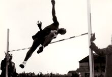 Hoogspringen in het Hermesstadion aan de Torhoutse steenweg.