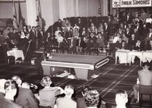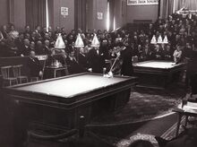 Wereldkampioenschap biljart driebanden in het Casino-Kursaal Oostende van 23 tot 28 juni 1964. Raymond CEULEMANS was de winnaar. Tweede Marcelo LOPEZ (Argentinië) en derde Roger HANOUN (Frankrijk). Herkennen we links naast de lamp met nr. 2, Raymond CEULEMANS ?