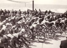 Formaat : 13 x 18 cm. - Start van een wielerwedstrijd op de Albert I-promenade.