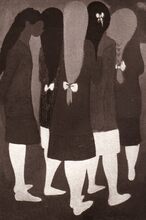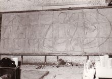 Een werk van Jo MAES. Het ceramieken basreliΓ«f voor de buitenmuur van de gemeenteschool in Bredene