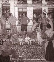 Na een ontvangst op het dd. stadhuis (huidig gerechtsgebouw) bij het bezoek van een afdeling Spahis (Noord Afrikaanse ruiters in dienst van het Frans leger) aan de stad, poseren de notabelen op de trap van het gebouw. Centraal staat burgemeester Hendrik SERRUYS,Β links stadssecretarisΒ Michel SURMONTen rechts schepen Louis VANDENDRIESSCHE. Rechts vooraan, deurwachter Henri LANNOYE.