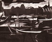 Spahis (Noord Afrikaanse ruiters in dienst van het Frans leger) komen voorbij het tweede handelsdok aan de Vindictivelaan. Op de achtergrond het gebouw van het Panorama van den Ijzer.