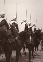 Een vijftal Spahis (Noord Afrikaanse ruiters in dienst bij het Frans leger) bij hunΒ bezoek aan Oostende.