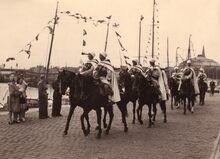 Op 21 juli werden de Spahis door het stadsbestuur ontvangenΒ op het stadhuis. Hier enkele ruiters voor het Gerechtshof (toen dienstdoend stadhuis) op het Canadaplein