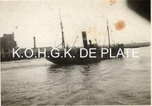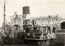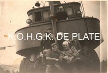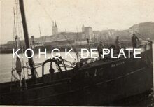 Formaat : 5,5 x 8 cm. - De O.150 "Jan Volders" aangemeerd in het Vlotdok nabij de kolenhandel van J. Legaey